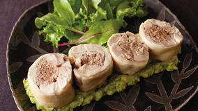 ミートローフのタネを牛肉で巻いて煮込んだ一皿。うまみがじんわりスープにしみ出て、深い味わいに仕上がります。