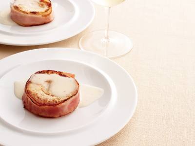 あっさり味のたけのこに、クリーミーなソースをかけると、ベーコンの塩けとうまみがアクセントになります。