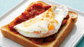 キムチ風味をプラスしたおなじみのトマトソース。ソースがからんだ厚揚げもおいしい!