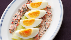 和風の定番あえ物、ぬた。練りがらしをマスタードにかえて、せん切りのうどをたっぷりのせてサラダ感覚に仕上げています。