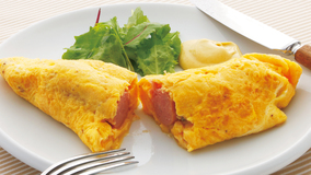 甘辛く煮た厚揚げとしいたけがじんわりおいしい。ご飯のおかずになるスクランブルエッグです。