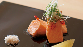 刺身用のサーモンを甘酢で煮てからオイルづけにします。火は通っているのに、驚くほどしっとり。ツナのように、パスタやサンドイッチにしてもおいしい!