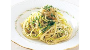 しらすの濃厚なうまみが際立つ一品です。アスパラガスをゆでずに使い、青々とした香りを楽しみます。