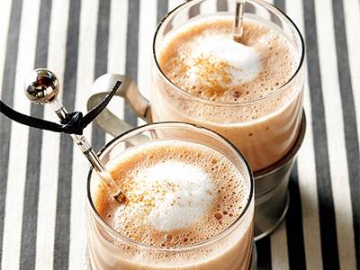 溶かしたチョコレートに生クリームを混ぜて乳化させ、ガナッシュをつくります。それを牛乳で溶かした濃厚なホットドリンクです。ラム酒で風味づけして大人の味わいに。
