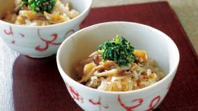 炊飯器にセットするだけで、きのこの香りとベーコンのうまみたっぷりのご飯のできあがり!簡単なのに春菊をのせるだけで、おもてなしにもつかえる一品に。きのこの大きさをそろえると食感がよくなります。