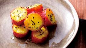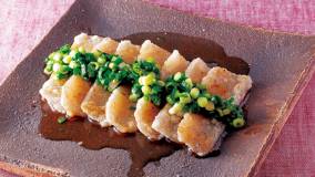 身近な材料だけでできる、目新しく、しゃれた一品です。薄切りのこんにゃくも、かたくり粉をまぶしてごま油で焼くと、ボリュームがアップ!
