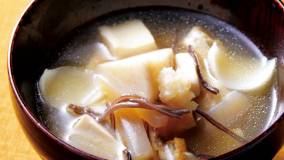 ゆでてからいったこんにゃくは、歯切れがよく、香ばしさも抜群です。まろやかな味わいの豆乳と白みその地、柔らかなかぶが、こんにゃくの魅力を引き立てます。