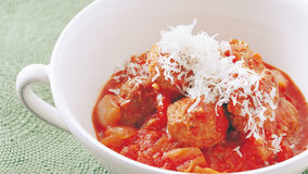 ローマ風にトマトで煮込み、最後にしょうゆで味を引き締めます。パスタにもご飯にもよく合います。