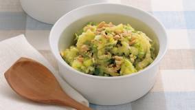 新じゃがいもに爽やかなセロリを加え、軽やかな仕上がりに。相性抜群のピーナツを散らして、おいしさアップ!