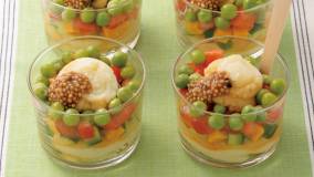 持ち寄り会やパーティーに簡単で見栄えがよい野菜のディップです。プラスチックカップなど使い捨てできる容器に入れて持ち運べば、花見などにもぴったり。