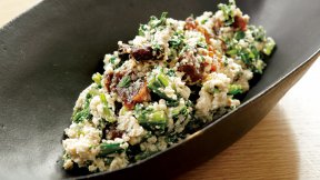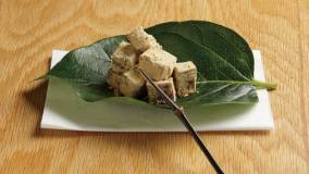 春菊のほろ苦さと干し柿の甘さを豆腐の衣で包みます。