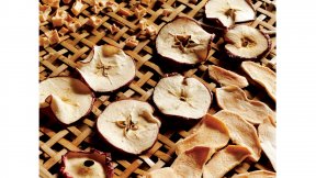 りんごは薄く切り塩水にくぐらせると、きれいに干し上がります。