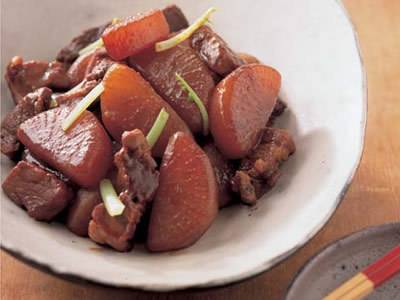 大根が豚肉のうまみを自分のものにして、味わい深い煮物です。見た目ほど味は濃くないので、食べやすくなっています。