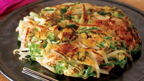 余った野菜を食べきりたいときに、粉でまとめてチヂミにします。天ぷら粉を使えば材料が少なくてすみ、カリッとおいしく焼けます!