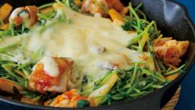 人気のチーズタッカルビをフライパンで簡単につくります!とろーりチーズに豆苗がシャキシャキッで、食べ飽きません。
