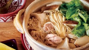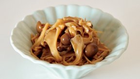 青菜を豆苗にかえ、めんつゆを使った、手軽な治部(じぶ)煮風の煮物。鶏肉は小麦粉をまぶすと、ツルンとのどごしよく煮上がり、煮汁に軽いとろみがついてよくからみます。