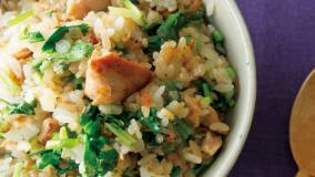 梅の酸味でさっぱりとした味わいに、豆苗のシャキシャキ感がアクセント。味がしっかりついているので、たれがなくてもおいしく食べられます。好みで酢じょうゆをつけても。