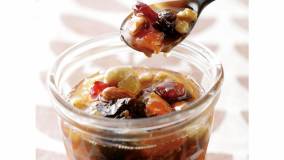 余ったナッツやドライフルーツをポンポン入れて。チーズに添えたり、ヨーグルトやパンにかけてどうぞ。