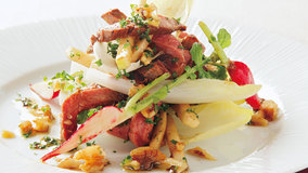前菜向きの、大人のごちそうサラダ。りんごの甘酸っぱさとチコリのほろ苦さが絶妙のバランスです。