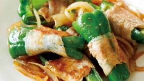 くるりと豚肉を巻くだけで、ピーマンが一気にランクアップします。甘辛だれがからんだたまねぎと一緒に。