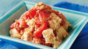 手でザックリくずした豆腐でつくる簡単白あえ。トマトと豆腐の相性のよさを実感できる一品です。