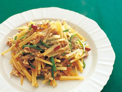 細切り豚肉のうまみとシャキシャキのじゃがいもがからみ合って、あとをひくおいしさです。