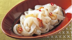 大きめに切った新たまねぎは主役級のおいしさ!豚肉のうまみを吸ったたまねぎの甘さが、しょうがだれと合わせるとさらに際立ちます。