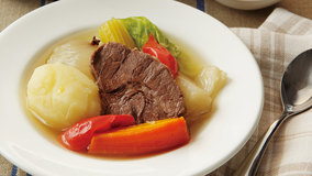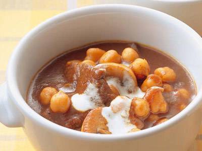 たっぷりのたまねぎとにんにく、トマト、そして隠し味のウスターソースでコクを増した煮込みです。