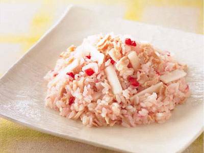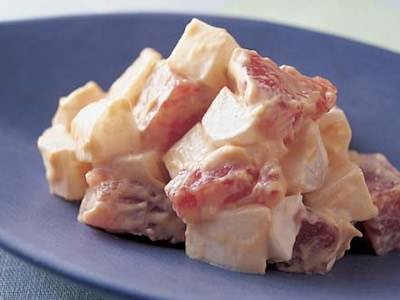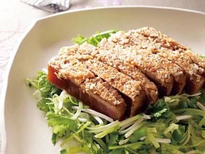 季節ならではのかつおと山うどの組み合わせにからしごまネーズのまろやかなコクがよく合います。