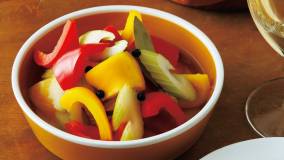 レモンの爽やかな酸味を生かしたマリネです。甘みの強いフルーツトマトを使うと、ワンランクアップのおいしさ。