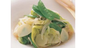 だしによって野菜の風味が引き立つ、おひたしです。 小松菜や春菊、水菜などの葉野菜や焼きアスパラガスなどでもおいしいです。