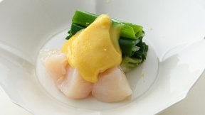 新じゃがと焼いたほたるいかに酢みそをかけてほんのり温かく仕上げた一品。まろやかな味わいに気持ちがホッとします。
