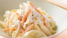 堅い外葉を色よくゆでて、ごま風味のあえ物に。たこのネットリ感とキャベツの歯ざわりを楽しみます。