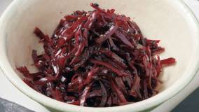 アクが少なく、繊維も柔らかな新ごぼう。リボン状にピーラーで薄切りにして、弾力のあるたことの食感の違いを楽しみます。