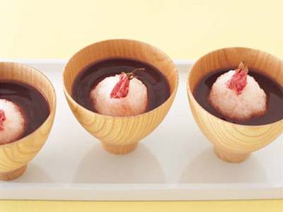 ひな祭りにふさわしいミルクわらびもち。ちょっと豪華に、和風のパフェ仕立てにしました。