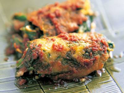 ほうれんそうと白子の濃厚さが一体となった驚きのおいしさ。コクのあるアンチョビソースをかけて。