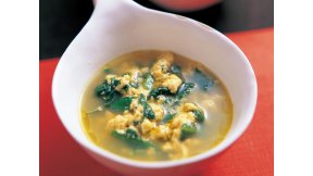 ほうれんそうはゆでずに蒸し焼きに。卵を加えたら、しっかりと混ぜて完全に火を通すのがポイント。