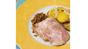 バルサミコ酢の酸味がアクセントの、食べごたえのある本格的なビーフシチュー。レーズン入りオレンジライスにかけると絶品です。